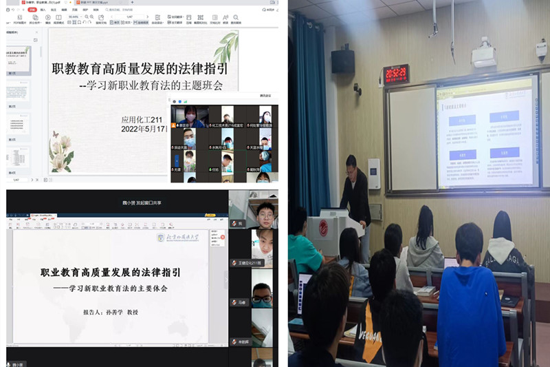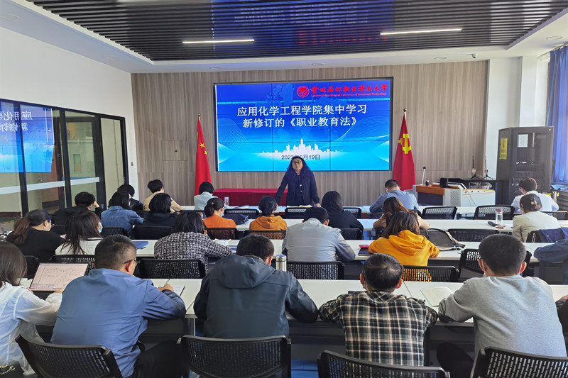 新版《中华人民共和国职业教育法》已经正式施行,这标志着我国现代职业教育体系建设进入全新的法治化发展阶段。为深入学习宣传和贯彻新修订的职业教育法,5月19日,应用化学工程学院在第四工业中心会议室组织教师进行集中学习,同时要求各班召开线上、线下主题班会为学生进行解读,做到全体师生共学职教法,促进学法知法活动落地落实。