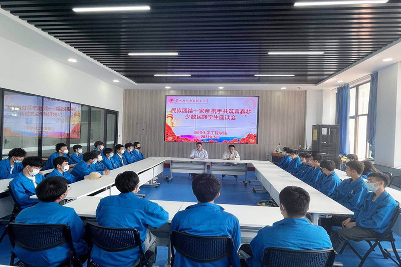 为增强少数民族学生间的沟通交流,关爱少数民族学生的学习与生活,解决他们遇到的困惑与问题,5月25日中午,应用化学工程学院在第四工业中心二楼会议室组织开展了“民族团结一家亲 携手共筑青春梦”少数民族学生座谈会。学院领导、辅导员以及32名少数民族学生代表参加座谈会。