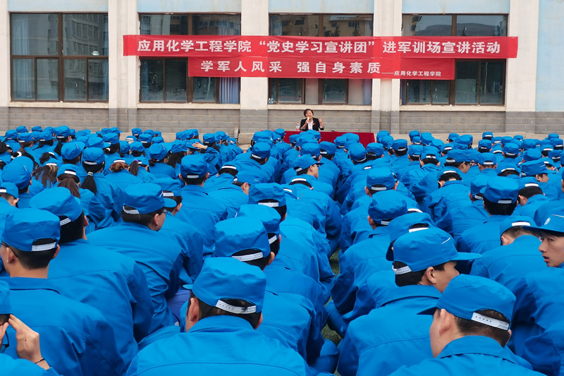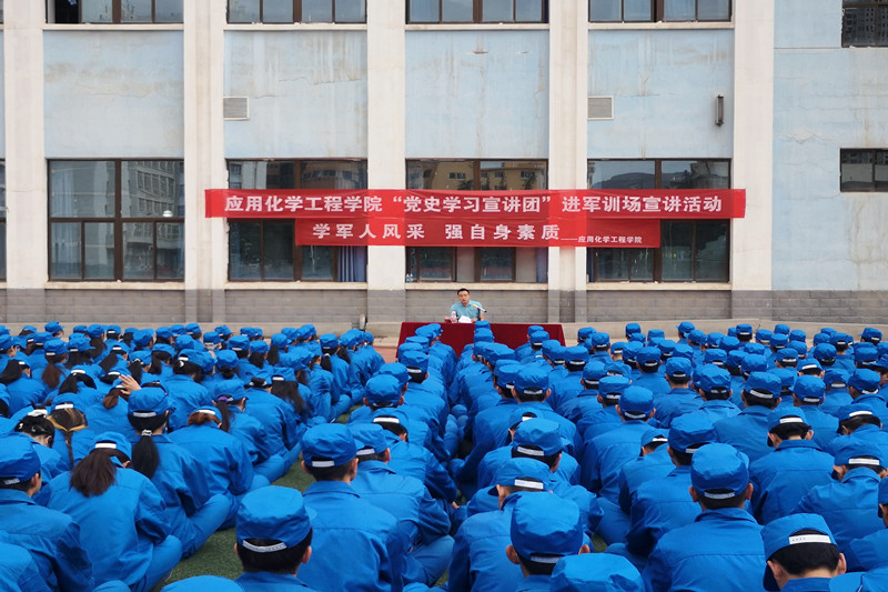 为推进党史学习教育的深入开展,激励学生从建党百年的光辉历程中汲取强大精神力量,励志勤学,奋发有为,6月1日,应用化学工程学院“党史学习教育宣讲团”走进2021级学生军训现场开展党史宣讲活动。