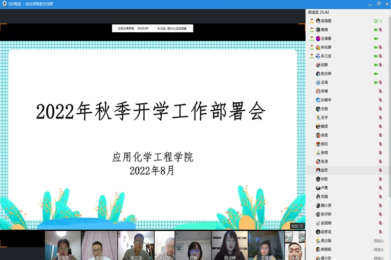 应用化学工程学院各班级分别通过班级群、腾讯会议等召开了“疫情防控”“线上课程开课准备”“线上五个一教育”等主题班会,会议旨在提高同学们强化防疫意识,强调同学们在线上课的纪律,确保将学校的要求通知到每位学生。同学们纷纷表示,主题班会的召开对特殊时期个人做好学习和就业规划起到了指明灯的作用。在疫情防控的关键时期,一定认真做好个人安全防护,全面落实学校各方面的要求。