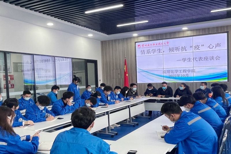 为了解疫情防控期间返校学生思想、学习、生活状态变化,听取学生在教育教学、管理服务、衣食住行等方面的诉求与意见,进一步做好学院学生管理工作。10月11日晚,应用化学工程学院在第四工业中心二楼会议室召开“情系学生,倾听心声”2022年秋季学期学生代表座谈会。学院领导、全体辅导员参加会议。