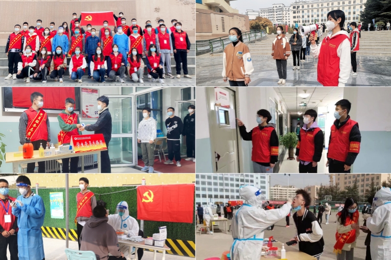 在防疫志愿服务活动中,由学院学生党员、入党积极分子、优秀学生组成的“核酸检测志愿服务队”、“防疫宣传志愿服务队”、“防疫督导志愿服务队”、“学生党员先锋岗”,“三队一岗”志愿服务人员,按照统一安排,身着“红马甲”,佩戴党员志愿服务授带和工作牌分批次、不间断、轮流值守,主动亮身份、带头当先锋,一丝不苟地穿梭在各个服务岗位,校内随处可见志愿者忙碌的身影。“大家拿好手机,打开登记码,提前准备好,保持一米远的安全距离”。“请大家戴好口罩,保持安静”。“核酸检测志愿服务队”主动协助医护扫码登记信息、维护核酸检测秩序,全力配合现场检疫人员的工作;“防疫宣传志愿服务队”对学生进行健康宣传引导,提醒同学们严格遵守学校疫情防控要求,提高自我防护意识,持续做好个人防护;“防疫督导志愿服务队”分别在校园、食堂进行巡查,督导学生佩戴好口罩、不扎堆聚集;打饭排队保持距离,提醒同学不堂食;“学生党员先锋岗”志愿者们在学生公寓楼门庭轮岗值班,在公寓楼内进行巡查,提醒大家做好宿舍通风、卫生、消毒以及进出宿舍的体温测量等工作,将疫情防控各项措施落细落实。