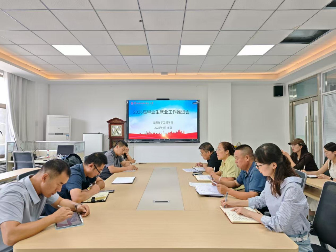 为扎实推进2026届毕业生就业工作,精准破解就业难题,9月15日,应用化学工程学院在综合楼二楼会议室召开2026届毕业生就业工作推进会。学院党委负责人、就业辅导员及2026届毕业班班主任参会。