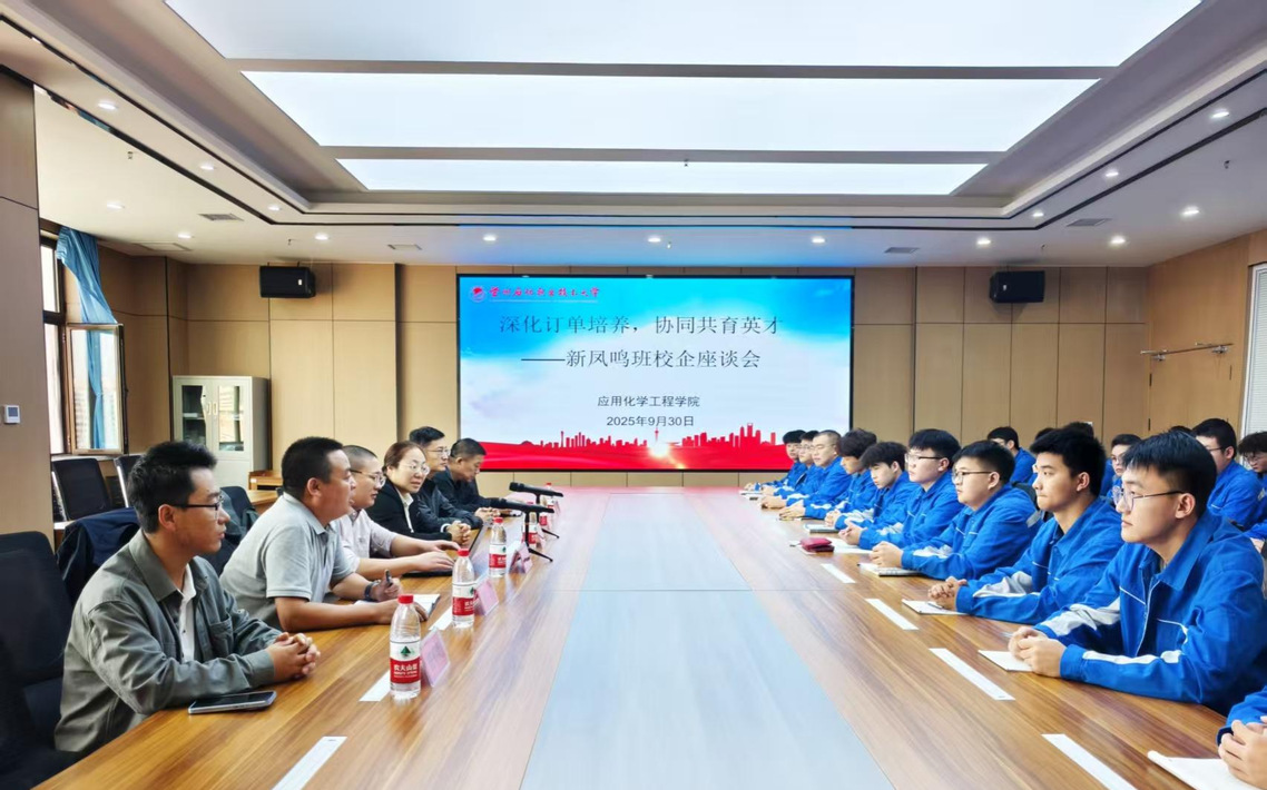 金秋送爽,硕果飘香。在国庆、中秋双节来临之际,为深化校企合作,创新人才联合培养模式,共育高素质技术技能人才,9月30日上午,在东校区三中心九楼会议室召开新凤鸣学徒制班校企座谈会。新凤鸣集团股份有限公司人力资源部主管沈佳斌,学校国际交流与合作办学处、应用化学工程学院负责人及新凤鸣应用化工241班全体学生参加会议。