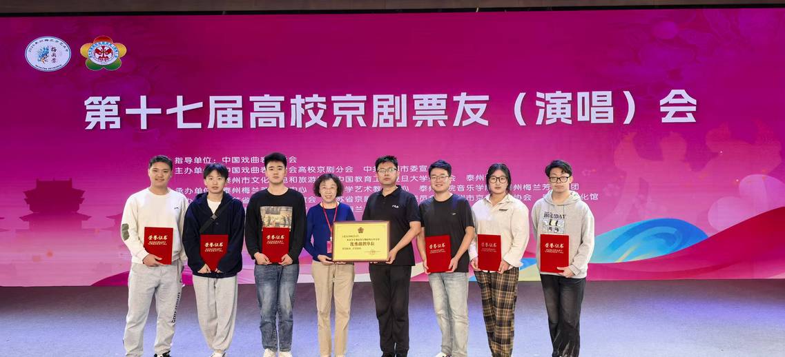 9月29日-10月4日,由中国戏曲表演学会指导,中国戏曲表演学会高校京剧分会和中共泰州市委宣传部主办的第十七届全国高校京剧演唱会在江苏泰州学院圆满落幕。我校代表队凭借精湛的技艺和出色的团队表现荣获“优秀组织单位”称号,是唯一获此殊荣的职业院校。其中选送的六个节目获奖,共获2个一等奖、2个二等奖、2个三等奖,展现了学校在传统文化传承与艺术教育方面的丰硕成果。