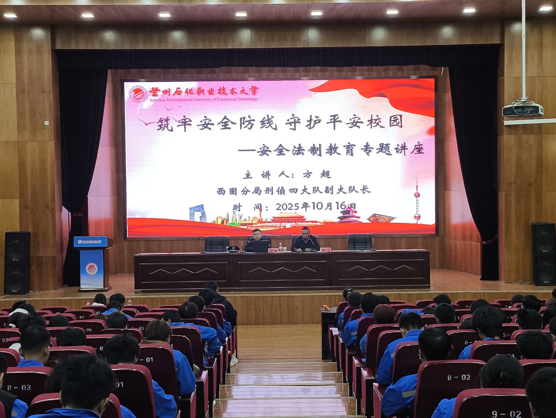 为扎实推动“一学五查双促进”素质提升月活动走深走实,切实增强学生安全防范意识与法治观念,10月16日晚,应用化学工程学院紧密围绕活动方案要求,联合兰州市公安局西固分局刑侦四大队,在西校区多功能报告厅成功举办了安全法制专题教育暨防电信网络诈骗讲座。学院学生管理负责人、辅导员、全体班长、团支书、宿舍长及学生会干部参加了此次讲座。