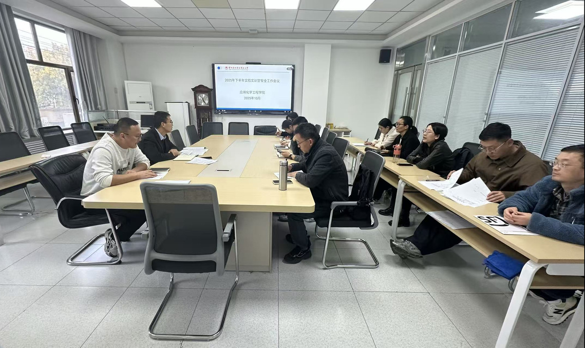 为进一步加强实验实训室安全管理,压实安全责任,有效防范和遏制安全事故发生,保障实践教学与科研工作平稳运行,10月22日下午,应用化学工程学院在院办二楼会议室组织召开了2025年下半年实验实训室安全工作会议。学院相关负责人、各教研室主任及入驻化工创新创业中心的全体教师、全体毕业论文指导教师参加会议。