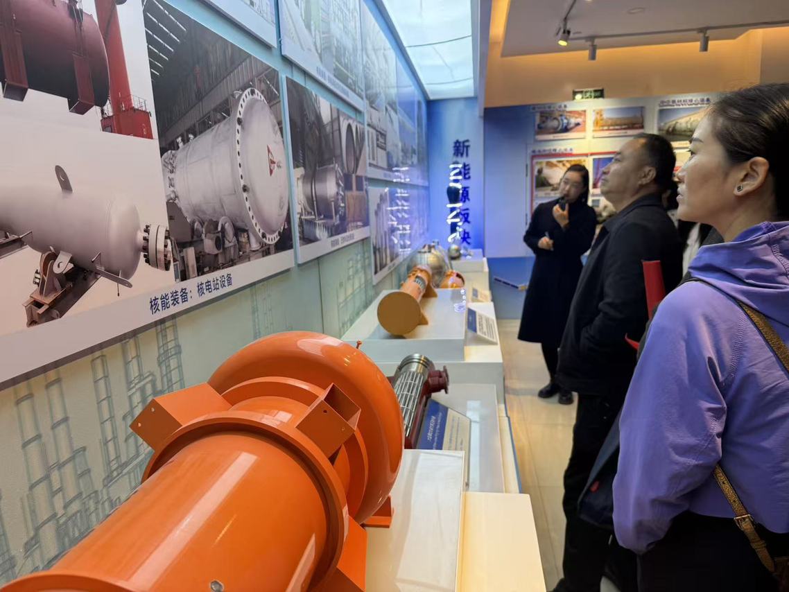 作为我国能源装备制造领域的“国家队”,兰石集团始建于1953年,累计创造113项“中国第一”,素有“石化机械脊梁”的美誉。活动首站,党员教师们走进兰石展馆,通过历史影像资料、实物装备模型及互动式展陈,系统了解企业发展历程——从传统炼油化工装备研发制造,到如今向“核氢光储”新能源装备领域战略转型的全过程,直观感受行业发展脉搏与企业创新实力。