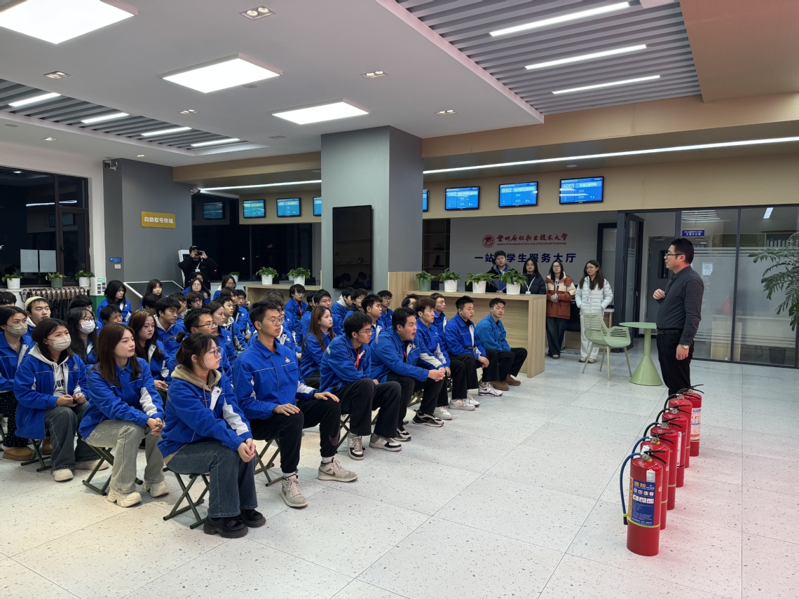 随后的消防器材操作环节将活动推向高潮。消防队员在现场展示了灭火器、消防栓、应急照明等常见消防设备,并指导学生骨干进行实际操作。在“一站式”学生社区的开放空间内,同学们在专业人员指导下轮流练习灭火器使用、消防水带连接等技能,将理论知识转化为实战能力。活动现场还设置了答疑环节,针对学生社区中可能遇到的消防安全问题进行专业解答。