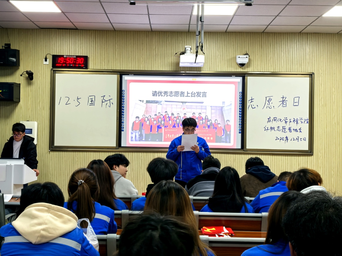 12月5日,在第38个国际志愿者日当天,应用化学工程学院红帆志愿者协会以一场主题宣讲会,将一年的服务足迹凝练为鲜活的育人教材。“奉献、友爱、互助、进步”的精神便不再是抽象标语,而是化为10次社区服务、12场校园护航、超200小时工时背后可触可感的温度。这种将化工人特有的严谨、细致与安全意识,注入助老助残、环境维护等日常服务的路径,让实践育人的理念在人际互动中完成了从“行动”到“浸润”的质变。