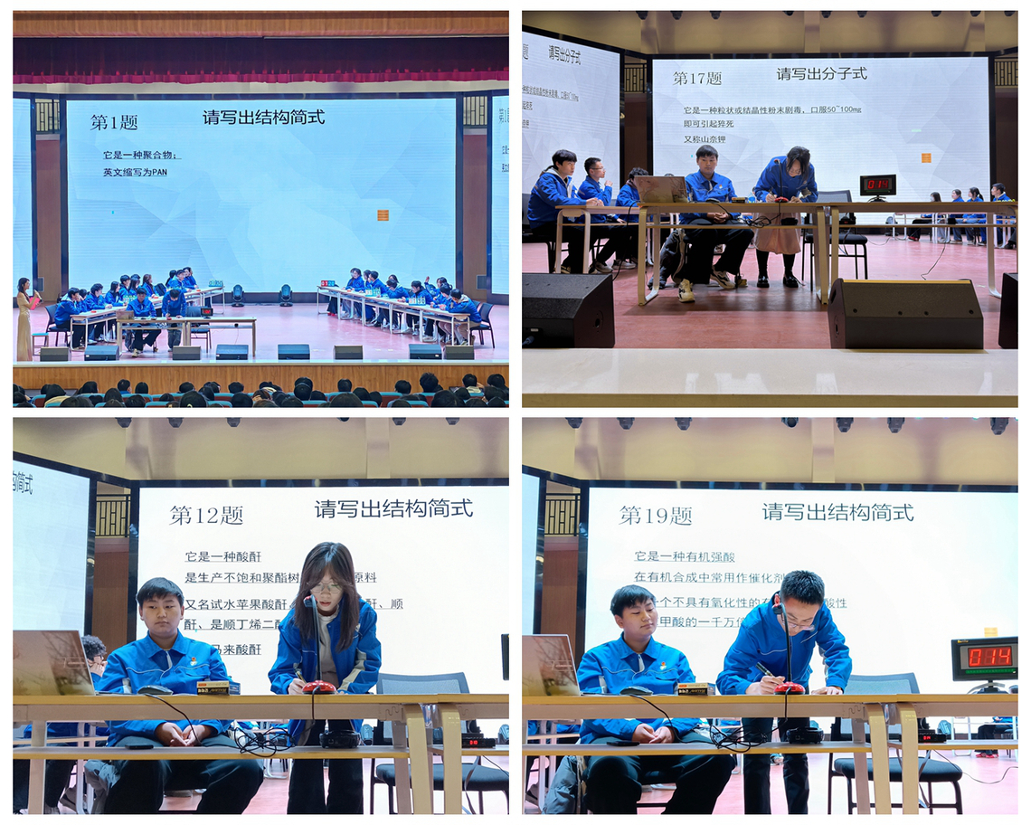 比赛现场氛围热烈而有序,各代表队喊出响亮口号,队员们斗志昂扬、沉着应战。在协作作答中,选手们充分展现专业积累与团队默契,精准书写每一个化学分子式。台下观众全程热情互动,时而为选手的准确作答鼓掌喝彩,时而为偶有的失误倍感惋惜,共同沉浸在专业知识比拼的乐趣中。