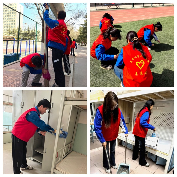 活动当天,春意初显。同学们手持扫帚、抹布、垃圾袋等工具,以饱满的热情投入劳动。大家分工明确,相互协作,重点对校园展板、道路两侧以及宿舍楼后墙的卫生死角进行了彻底清理,捡拾散落垃圾、落叶;在学生宿舍楼内,志愿者们认真擦拭楼梯扶手、清洁宿舍卫生死角,并对部分公共洗漱区域进行了水渍清理与消毒,为迎接此次宿舍大调整搬迁做准备。经过大家的辛勤劳动,相关区域的卫生环境得到了明显改善,面貌焕然一新。